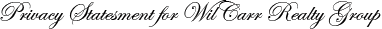 We want to make it clear that WilCarr Realty Group does not sell or trade customers/clients information to outside companies. We gather information such as name, address, phone numbers and e-mail addresses voluntarily by the user which allows us to better serve the needs of the customers/clients.